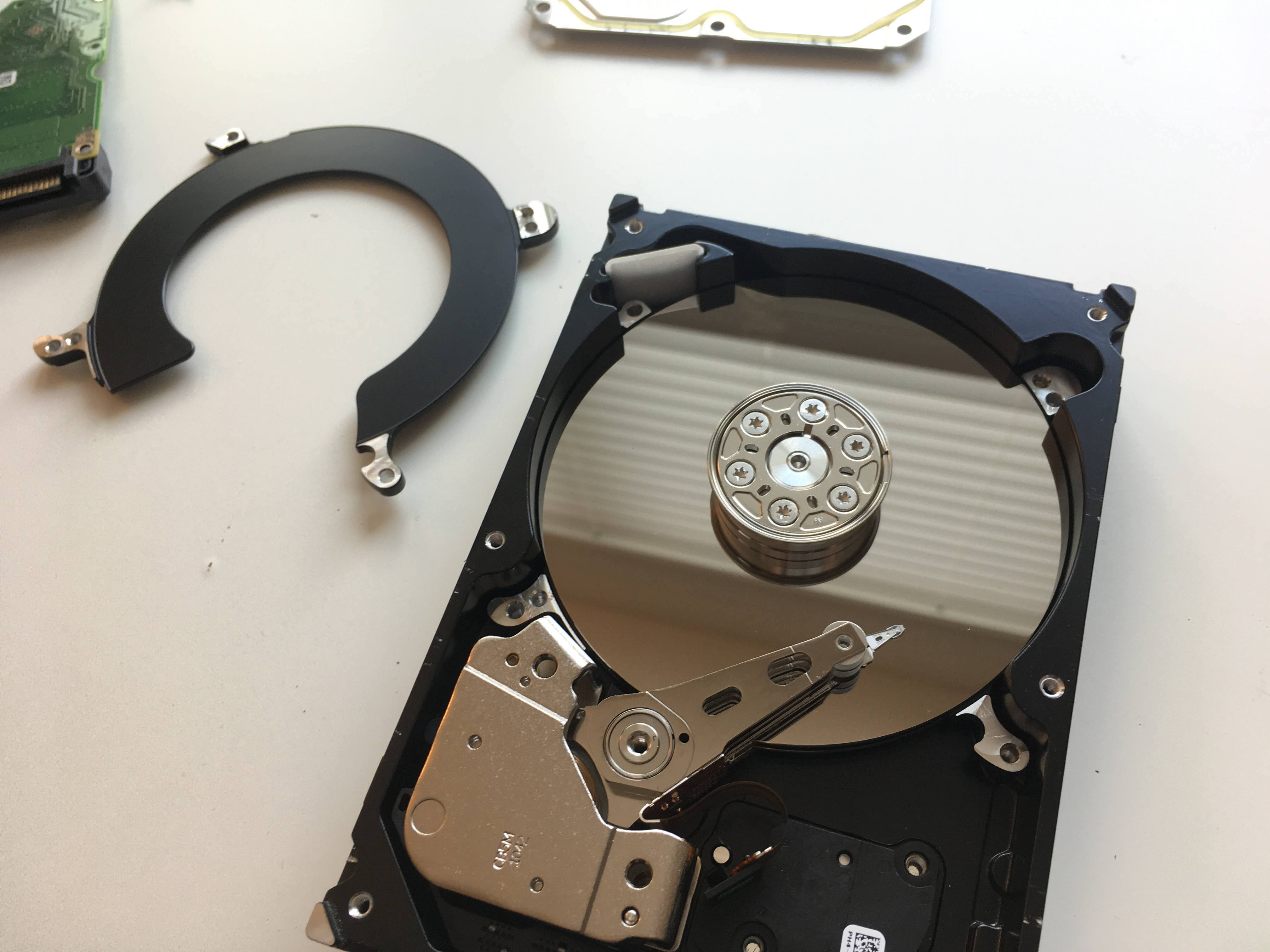 I had an extra hard drive sitting around collecting dust, so I disassembled it. It wasn't functional, so don't feel bad about it getting destroyed. It had been used for years to backup financial data for my parent's small business. I think I wiped it at some point in the past, but I was still uneasy about just tossing it in the trash. Pulling it apart and throwing it away piece-by-piece felt like a much safer way to dispose of it.
