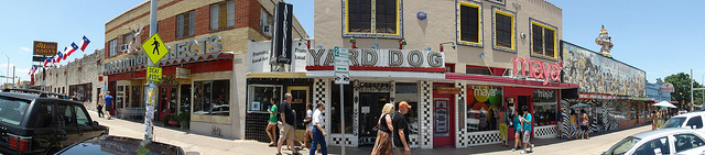 South Congress is home to numerous weird shops including Uncommon Objects and Lucy in Disguise as well as several food trucks such as Hey Cupcake!