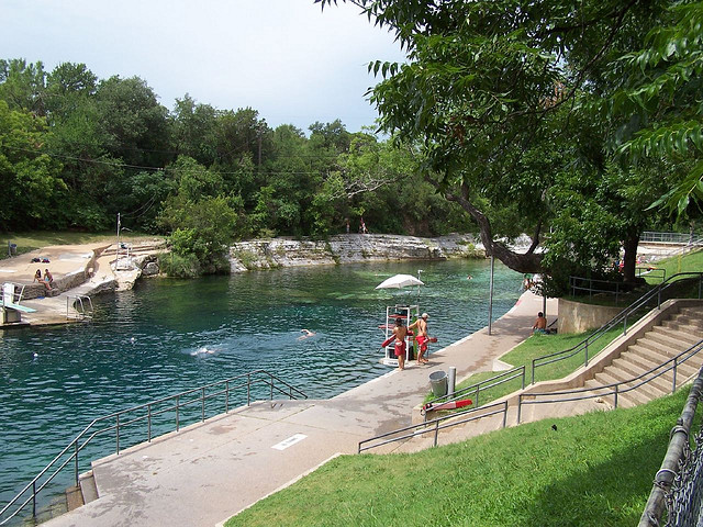 Barton Springs is a natural spring near Zilker Park. Since the water comers from deep underground, it's very clean and the same cool temperature year-round. You can swim here for free in the winter, and in the summer, admission is about $3. Life guards are present when admission is charged.